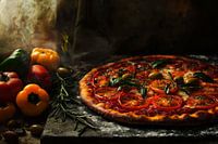 Bestelle dieses Stilleben Köstliche Pizza mit frischem Gemüse von Poster Art Shop als Reproduktion auf Leinwand, Alu-Dibond, als Poster, Fototapete oder Acrylglasbild.