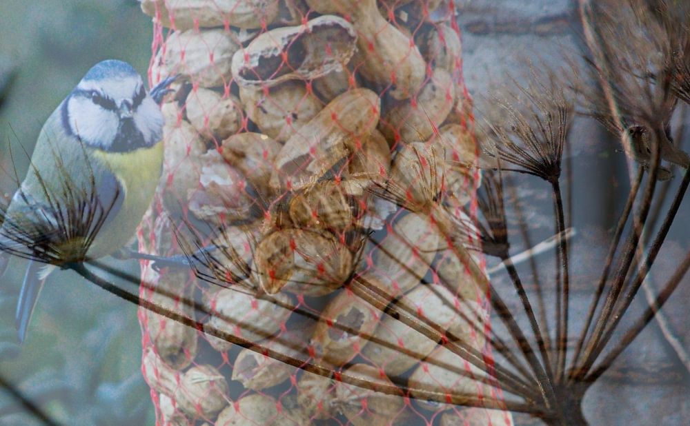 Eine Kohlmeise mit dem Gesichtsausdruck einer kleinen, weisen Eule sitzt nachdenklich in einer verträumten Umgebung.