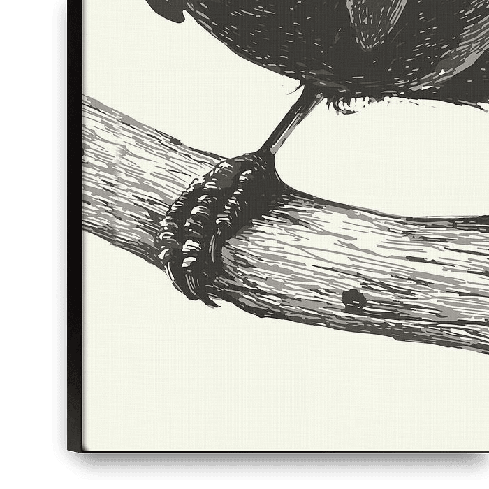 This captivating artwork, "Intricate Raven Portrait on Branch," showcases a beautifully detailed illustration of a raven perched on a branch. The artwork highlights the raven’s striking features, from its expressive eyes to its textured feathers, meticulously crafted to evoke both mystery and intrigue.