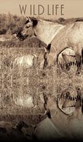 Einige Konikpferde am Wasser irgendwo in den Niederlanden