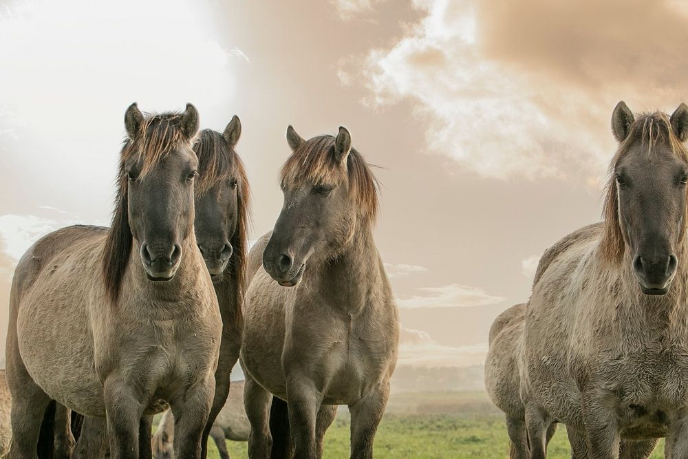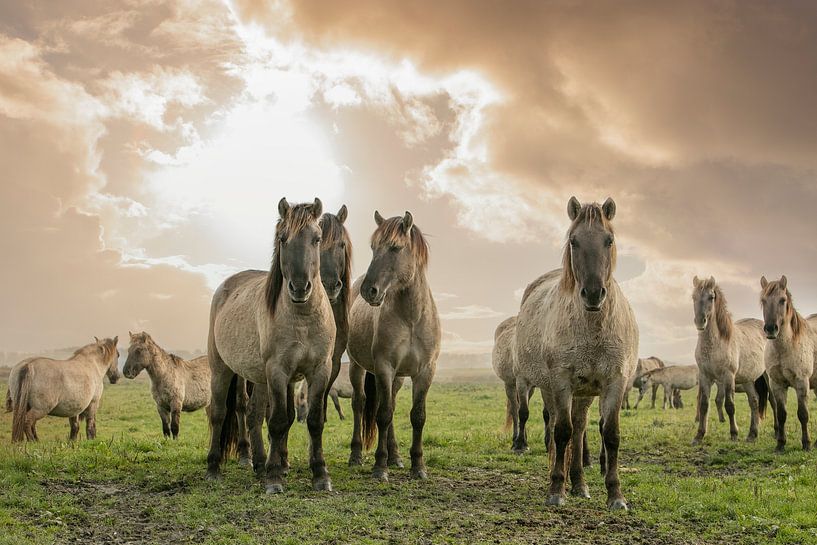 Bestelle dieses Landschafts-Wandbild Konik-Pferde von anne droogsma als Reproduktion auf Leinwand, Alu-Dibond, als Poster, Fototapete oder Acrylglasbild.