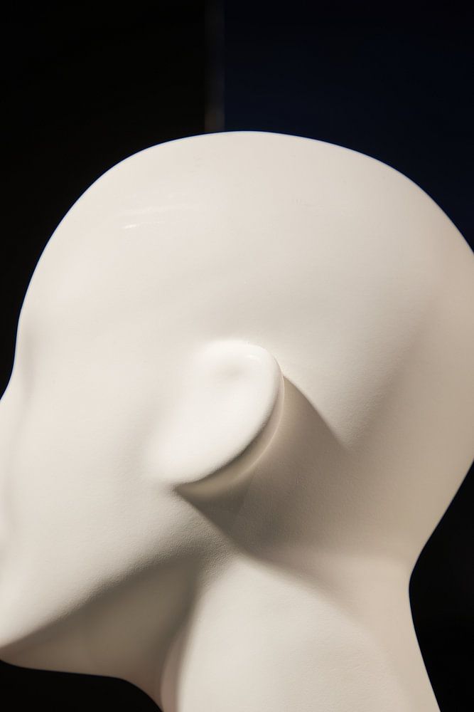 Kopf einer weiblichen Schaufensterpuppe in einem Schaufenster einer beliebten Einkaufsstraße in Berlin