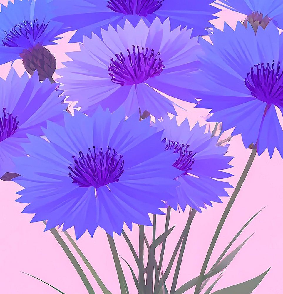 Illustration eines Kornblumenstraußes mit rosa Hintergrund. Das Bild wurde mit ai erstellt.