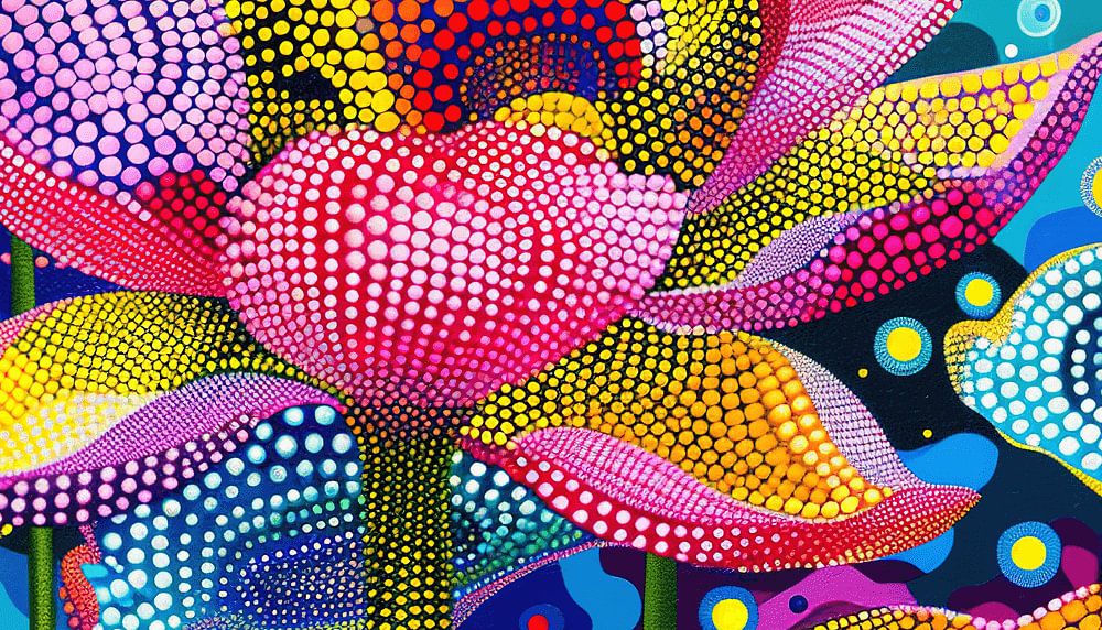 Dieses lebendige und fesselnde Kunstwerk mit dem Titel "Kosmische Blüte" fängt die Essenz einer fantastischen Blumenlandschaft ein. Mit seinen komplizierten Punktmustern und wirbelnden Farben vermittelt das Werk ein Gefühl unendlicher Energie und kosmischen Wunders. Die Verschmelzung von Pointillismus und abstrakten Formen schafft ein hypnotisches visuelles Erlebnis, das den Betrachter in eine Welt entführt, in der Natur und Kosmos in einem Tanz aus Farbe und Licht verschmelzen.