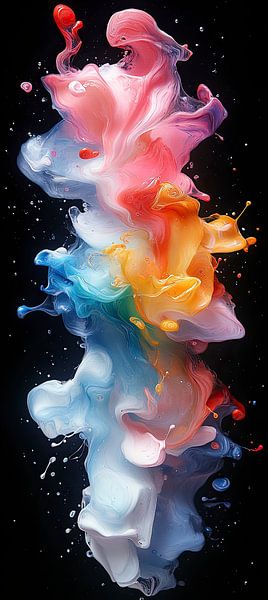 Eine hypnotisierende Explosion lebendiger Farben auf schwarzer Leinwand. Dieses Werk fängt die rohe Energie und chaotische Schönheit der Kreativität ein. Jeder Spritzer und jedes Tröpfchen scheint der Schwerkraft zu trotzen und bildet ein Universum aus leuchtenden Farben, die die Fantasie beflügeln. Dieses Kunstwerk verkörpert die…