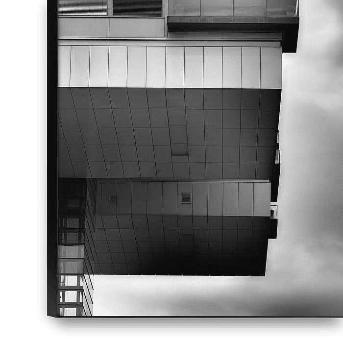 Teil eines Kranhauses im Rheinauhafen in Köln als Schwarzweiß Bild. Die Kranhäuser zählen zu den eindrucksvollsten Gebäuden in der Stadt Köln und sind ein begehrtes Motiv für Fotografen und Touristen.