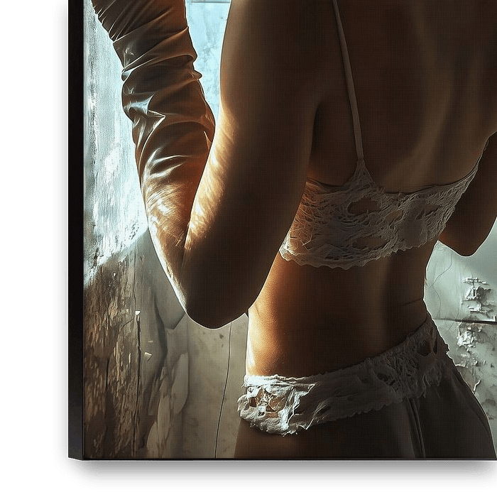 Diese eindrucksvolle Illustration zeigt eine Krankenschwester, die mit dem Rücken zur Kamera steht, eine Spritze in der behandschuhten Hand haltend. Ihr Gesicht ist hinter einer Maske verborgen, während sie vor einem staubigen Fenster in einem verlassenen Krankenhauszimmer steht. Das fahle Licht, das durch die verschmutzten Scheiben…