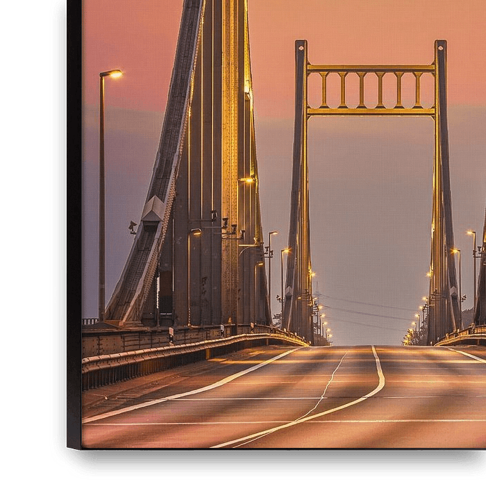 Bestelle das Foto Krefeld Uerdinger Brücke von LICHTERKISTE als Reproduktion auf Leinwand, Alu-Dibond, als Poster, Fototapete oder Acrylglasbild.