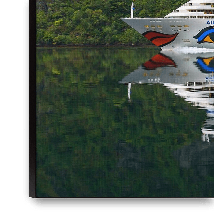 Bestelle dieses Landschafts-Wandbild Kreuzfahrtschiff Aida Sol im Geirangerfjord, Norwegen von Henk Meijer Photography als Reproduktion auf Leinwand, Alu-Dibond, als Poster, Fototapete oder Acrylglasbild.