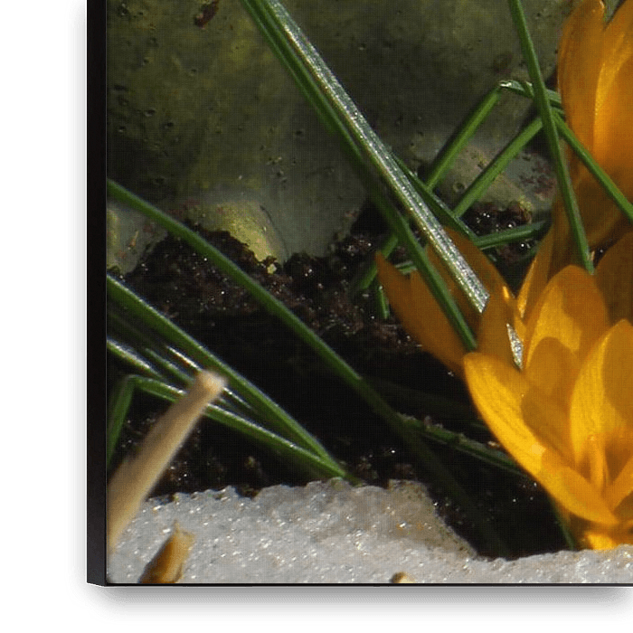 gelbe krokusse im schnee