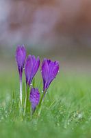 Bestelle dieses Blumen-Wandbild Krokusse nach einem frischen Frühlingsregen von John van de Gazelle fotografie als Reproduktion auf Leinwand, Alu-Dibond, als Poster, Fototapete oder Acrylglasbild.