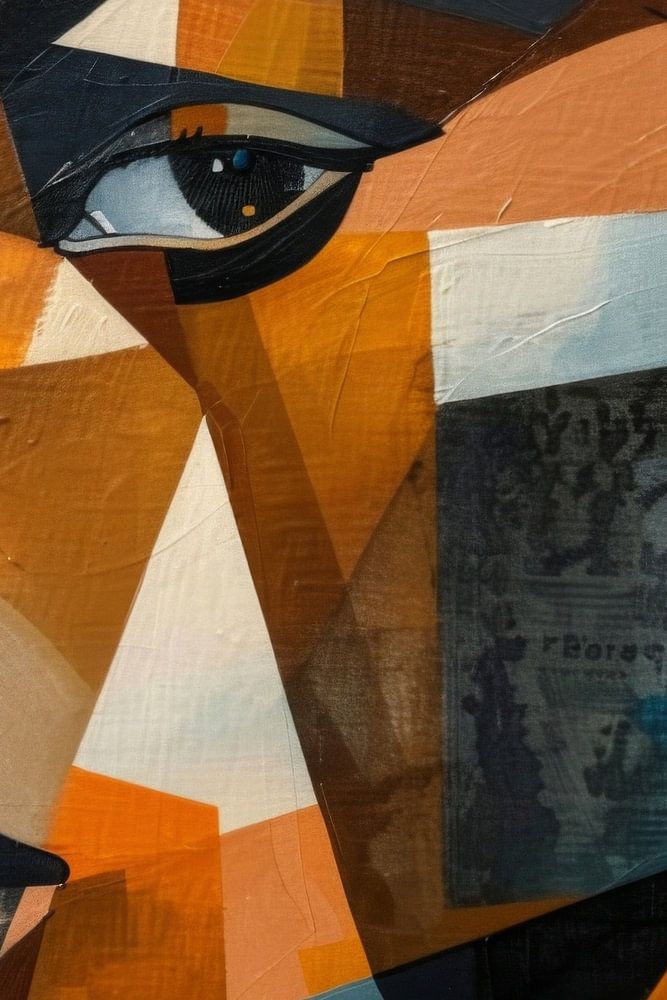 Dieses faszinierende kubistische Frauenporträt vereint warme Erdtöne mit kühlen Blau- und Grüntönen, um eine harmonische und zugleich dynamische Komposition zu schaffen. Die geometrischen Formen und Schattierungen verleihen dem Bild Tiefe und Charakter, während die geschlossenen Augen der Frau eine ruhige und kontemplative Atmosphäre ausstrahlen. Ideal für stilvolle Innenräume und Kunstliebhaber, die ein ausdrucksstarkes und zugleich beruhigendes Kunstwerk suchen. Dieses Gemälde bringt eine moderne, künstlerische Note in jedes Zuhause oder Büro.