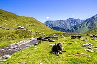 Bestelle dieses Kuh-Wandbild Kühe auf der Alm am Seebachsee von Christa Kramer als Reproduktion auf Leinwand, Alu-Dibond, als Poster, Fototapete oder Acrylglasbild.
