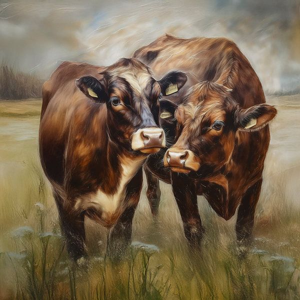Bestelle dieses Kuh-Wandbild Kühe auf der Weide von Marjolein Deelen als Reproduktion auf Leinwand, Alu-Dibond, als Poster, Fototapete oder Acrylglasbild.