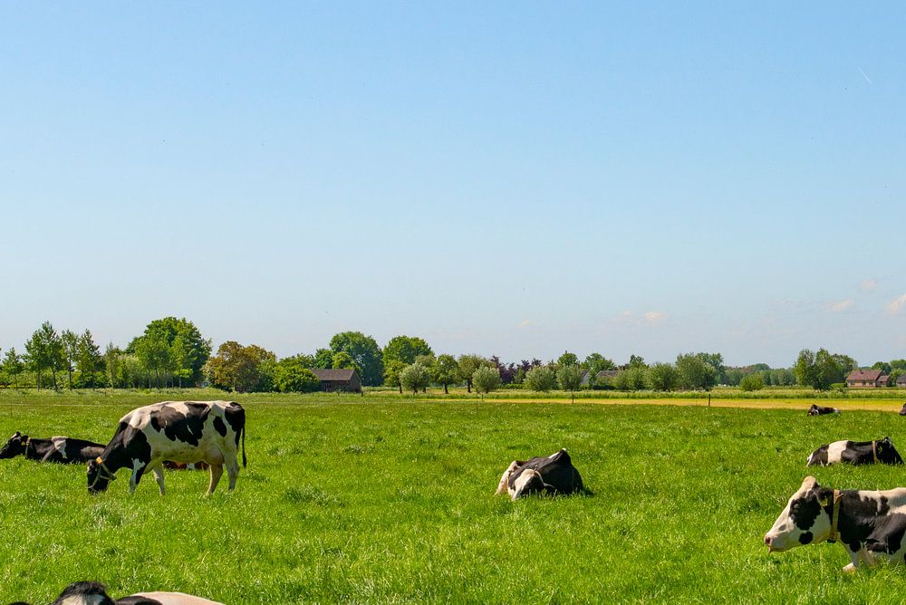 Kühe, die an einem schönen warmen Sommertag auf einer Wiese in der Sonne ruhen.