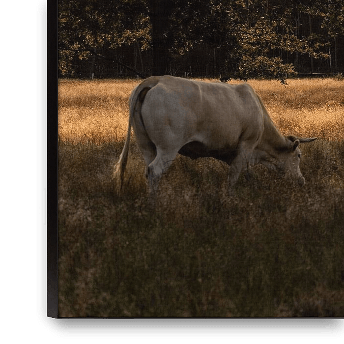 Bestelle dieses Landschafts-Wandbild Kühe in der Abendsonne von Tessa in Focus als Reproduktion auf Leinwand, Alu-Dibond, als Poster, Fototapete oder Acrylglasbild.