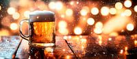 Kühles Bier vor blühenden Lichtern von Poster Art Shop