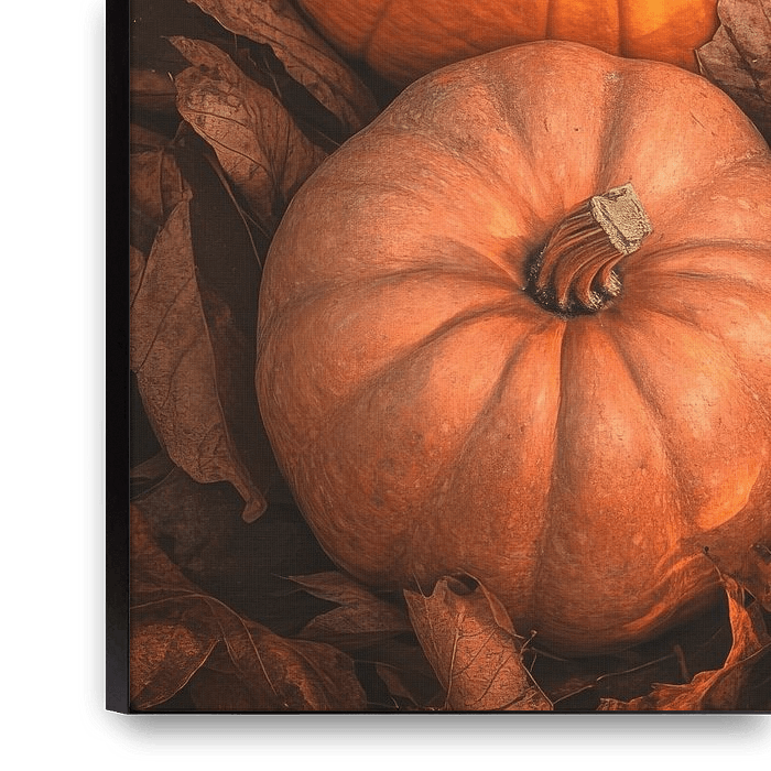 Bestelle dieses Landschafts-Wandbild Kürbisse im Laub von Poster Art Shop als Reproduktion auf Leinwand, Alu-Dibond, als Poster, Fototapete oder Acrylglasbild.