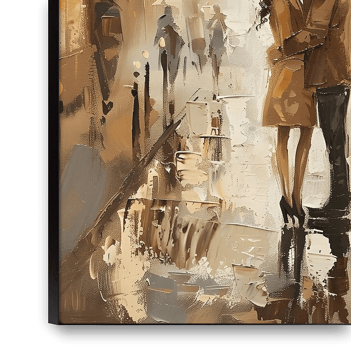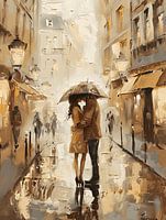 Bestelle diese Malerei Küssendes Paar im Regen von MNS Designs als Reproduktion auf Leinwand, Alu-Dibond, als Poster, Fototapete oder Acrylglasbild.