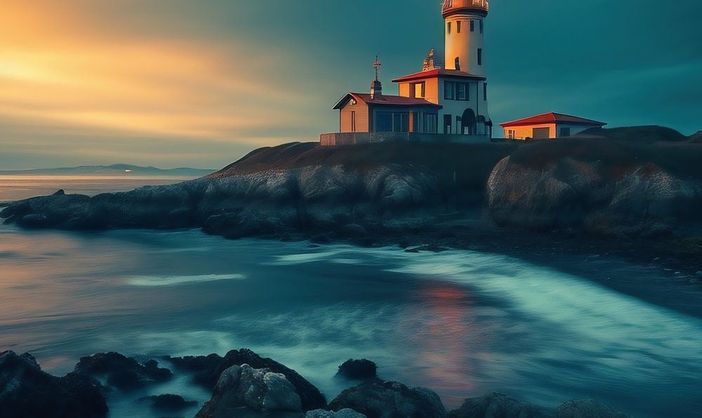 Leuchtturm aus der Luftfernlichtsicht Ästhetischer Minimalismusfernlichtsicht