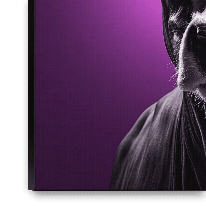 Bestelle dieses Kuh-Wandbild Kuh lila von KoeBoe als Reproduktion auf Leinwand, Alu-Dibond, als Poster, Fototapete oder Acrylglasbild.