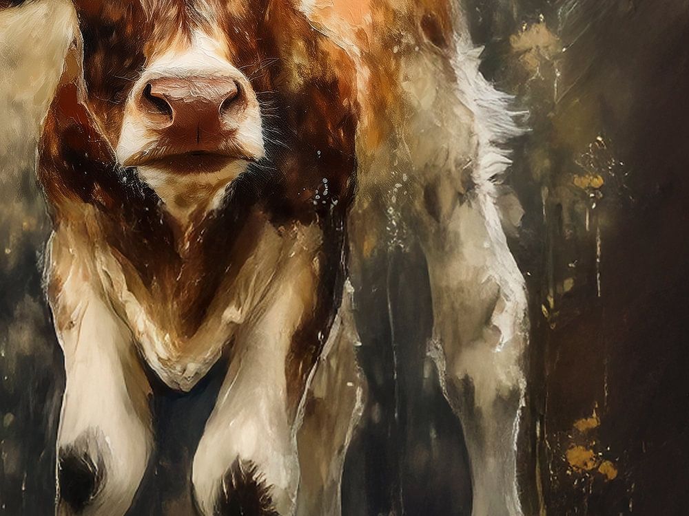 Bestelle dieses Kuh-Wandbild Kuh und Kalb von Marjolein Deelen als Reproduktion auf Leinwand, Alu-Dibond, als Poster, Fototapete oder Acrylglasbild.