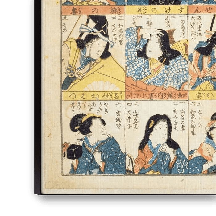 Utagawa Kunisada (1786 - 12. Januar 1865), auch bekannt als Utagawa Toyokuni III, war ein japanischer Ukiyo-e Künstler. Er gilt als der beliebteste, produktivste und kommerziell erfolgreichste Designer von Ukiyo-e-Holzschnitten im Japan des 19. Jahrhunderts. Zu seiner Zeit übertraf sein Ansehen das seiner Zeitgenossen Hokusai, Hiroshige und Kuniyoshi bei weitem.