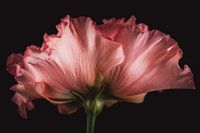 Dieses Fotokunstwerk zeigt die einzigartige Schönheit einer rosa Nelke aus einer besonderen Perspektive. Die subtilen, gewellten Formen der Blütenblätter, die von zartem Pastellrosa bis zu intensiveren Farbtönen reichen, werden durch das Licht wunderschön hervorgehoben. Dadurch wird die zarte Struktur der Blüte sichtbar, wobei der Stiel…