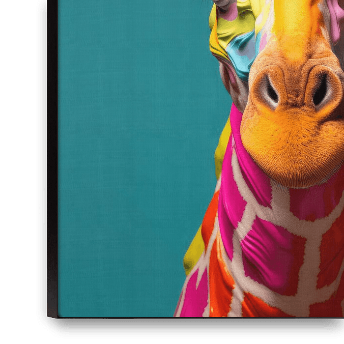 Holen Sie sich die Savanne in Ihren Wohnbereich mit diesem wunderschönen Foto einer farbenfrohen Giraffe. Lassen Sie sich von der einzigartigen Kombination aus leuchtenden Farbtönen und der Majestät dieser anmutigen Tiere verzaubern. Bringen Sie einen Hauch von Exotik in Ihr Interieur mit diesem eindrucksvollen Kunstdruck.