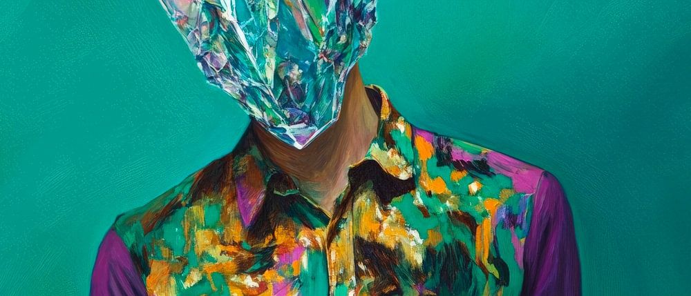 Eine schillernde Figur, deren Kopf aus einem glitzernden Kristall besteht, erweckt den Eindruck von Rätsel und Fantasie. Der bunte, kunstvoll gestaltete Hemd vermittelt Lebensfreude und Kreativität. Dieses faszinierende Kunstwerk bringt eine lebendige Atmosphäre in jedes Wohnzimmer und regt die Vorstellungskraft an, während es zum Gesprächsstoff jeder Zusammenkunft wird.