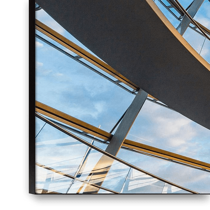 Ihre gewählte Kunst auf Leinwand, gespannt in einem Aluminiumrahmen. Schnell und einfach austauschbar für eine frische Ausstrahlung und ganz nach Ihren Wünschen.