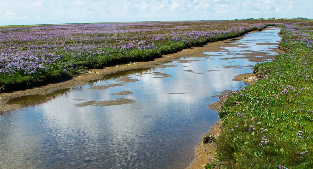 Reflectie op het water, kwelder op het Duitse waddeneiland Norderney