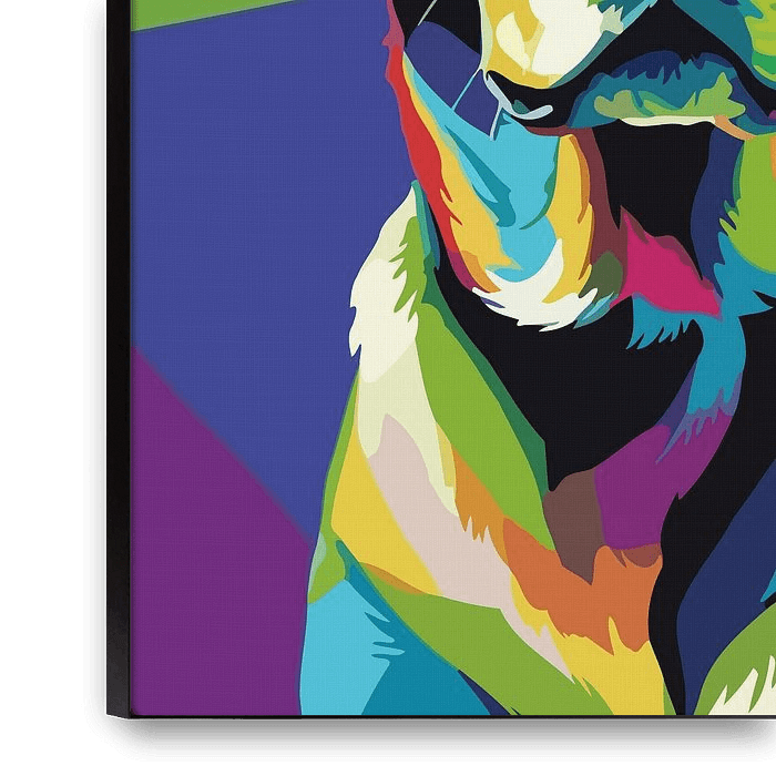 Diese lebendige Pop-Art-Darstellung eines Labrador Retrievers fängt den treuen Charme und den fröhlichen Geist einer der beliebtesten Hunderassen der Welt ein. Vor einem Hintergrund aus kräftigen Farbblöcken - Türkis, Fuchsia und leuchtendes Orange - werden die verspielten Augen und das freundliche Lächeln des Labradors durch kräftige…