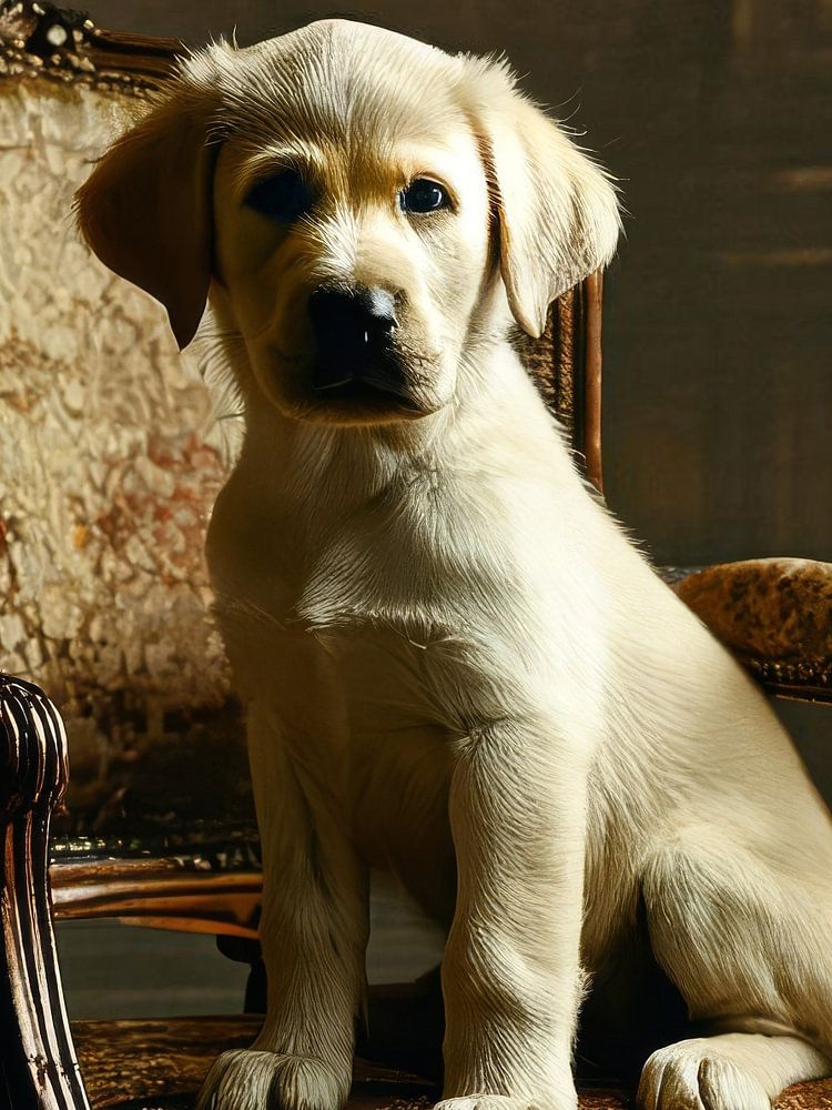 Süßer Labradorwelpe in eleganter Umgebung. Photorealistisch mit KI generiert.