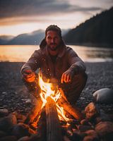 Bestelle dieses Landschafts-Wandbild Lagerfeuerromantik am See von fernlichtsicht als Reproduktion auf Leinwand, Alu-Dibond, als Poster, Fototapete oder Acrylglasbild.