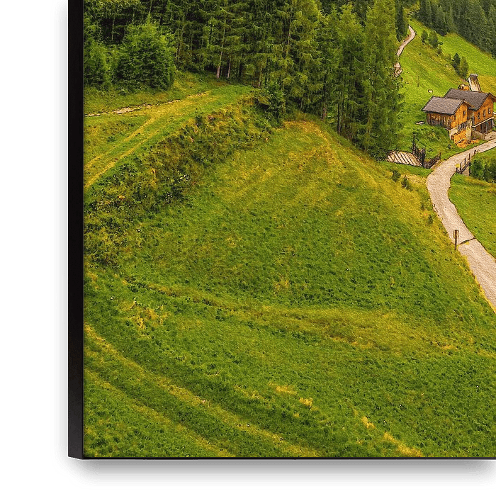 Ihre gewählte Kunst auf Leinwand, gespannt in einem Aluminiumrahmen. Schnell und einfach austauschbar für eine frische Ausstrahlung und ganz nach Ihren Wünschen.