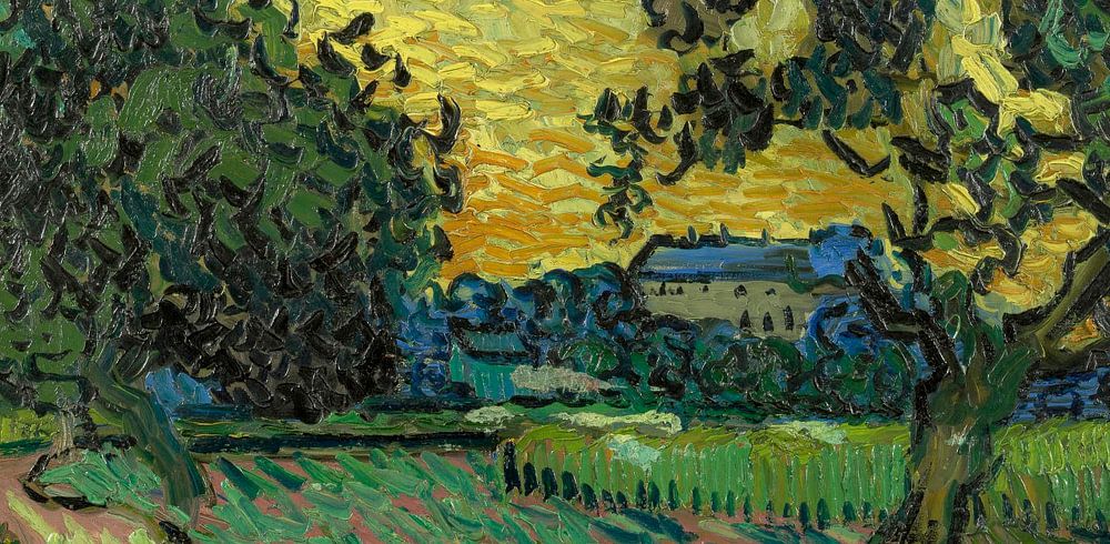 Van Gogh hat diesen Abend auf den Feldern in der Nähe von Auvers mit Blick auf das dortige Schloss gestaltet. Das Original-Kunstwerk misst 1,5 x 1 Meter.