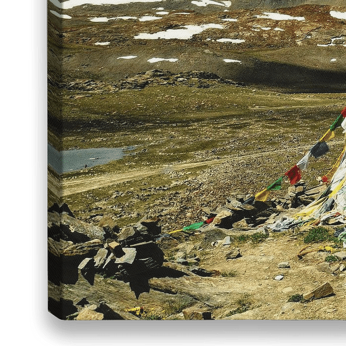 Die knallbunten Gebetsfahnen auf diesem Pass bilden einen schönen Kontrast zu der kargen Landschaft, zu der er zu führen scheint.