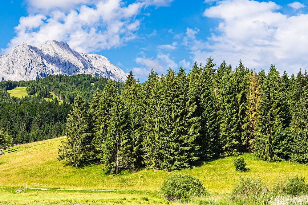Landschaft mit See und Wettergebirge nahe Mittenwald in Bayern.