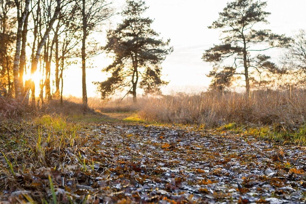 Landschafts-Nationalpark "Groote Peel", im Herbst mit Sonnenuntergang