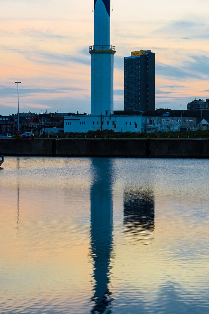 Lange Nelle vuurtoren te Oostende genomen vlak na zonsondergang