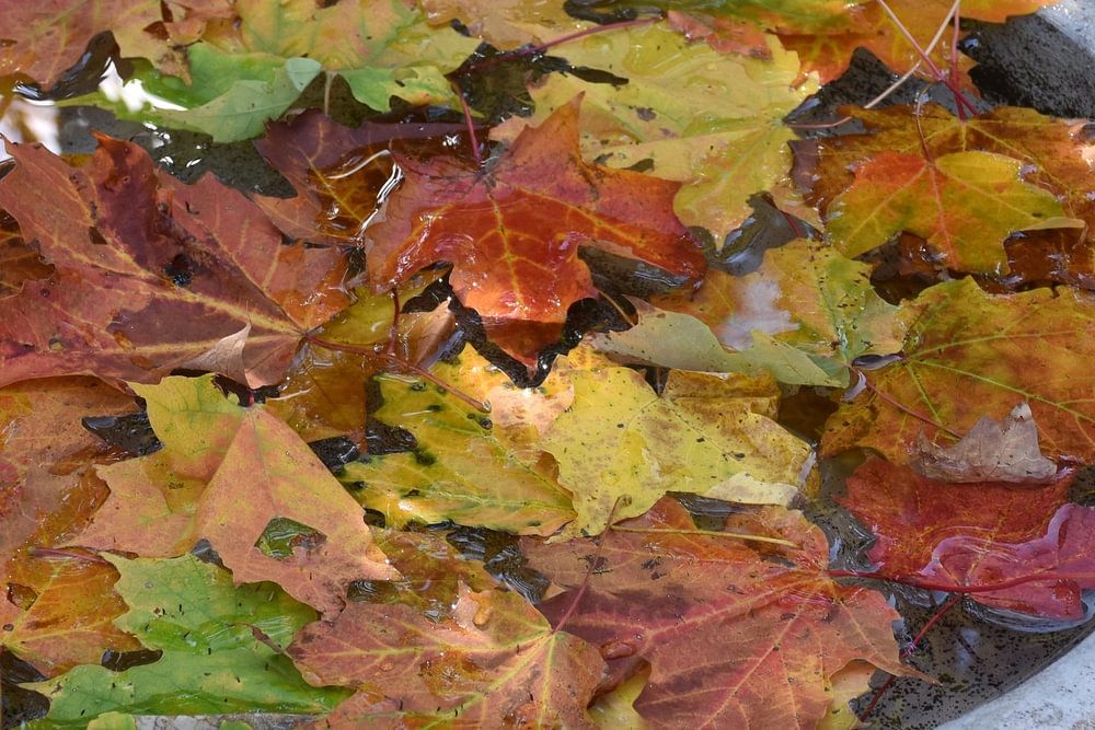 Laub im Garten im Herbst, Sainte-Apolline, Quebec, Kanada