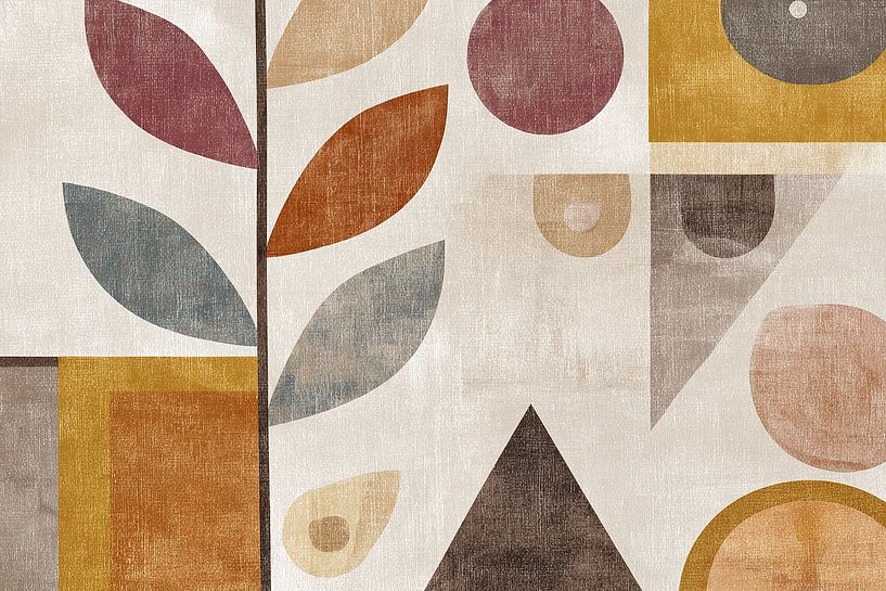 Details: Blätter, geometrisch, Gemälde, Natur, moderne Kunst, Erdtöne, Formen, abstrakt, Dekor, Innenarchitektur