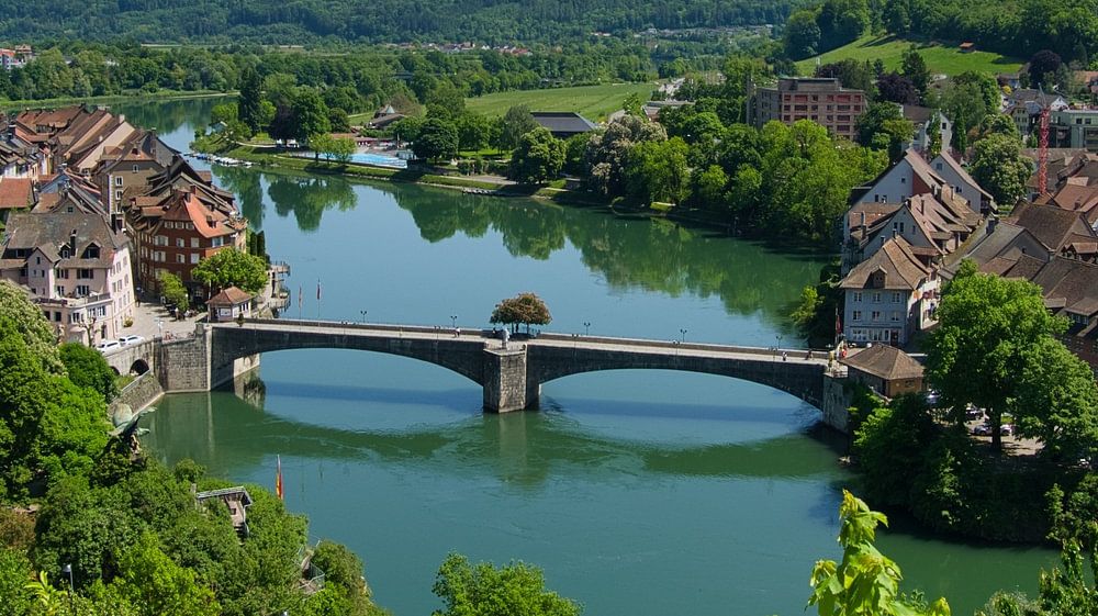 Wunderschönes Städtchen Laufenburg am Hochrhein, links die badische Seite, rechts die Schweizer Seite