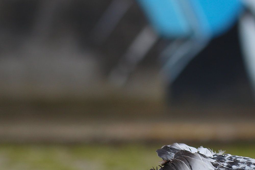De Joker kijkt lachend naar een duif die het niet heef gered.