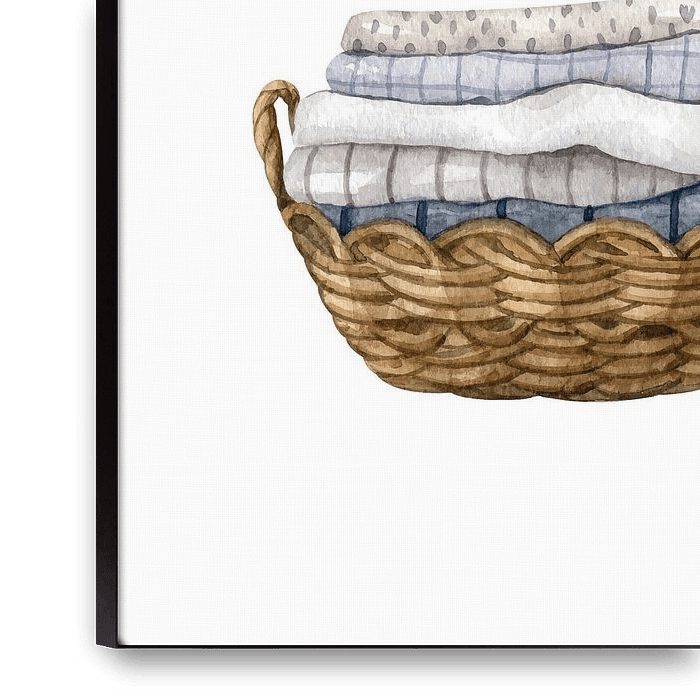 Bestelle das digitale Kunst Bild Laundry Wash With Care Poster - Wäschekammer Dekoration - Aquarell Stil - Stilvolle Wäschekorb Illustration - Neutrale Wandkunst für die Wäschekammer von Marian Nieuwenhuis als Reproduktion auf Leinwand, Alu-Dibond, als Poster, Fototapete oder Acrylglasbild.