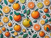 Dieses Kunstwerk zeigt eine lebendige Komposition aus Orangen und Limetten, deren leuchtende Farben und verspielte Anordnung sofort ins Auge fallen. Elemente der Pop-Art und des Modernismus finden sich in dieser Kreation wieder und verleihen ihr einen frischen und zeitgenössischen Look. Die dicken, schwarzen Konturlinien um die Früchte…