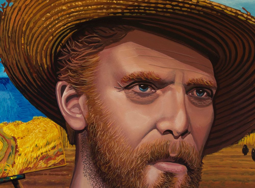 Realistisches Acrylgemälde der letzten Momente von Vincent van Gogh bei der Arbeit an seinem "Weizenfeld mit Krähen", gemalt vom Künstler Paul Meijering - das Originalgemälde ist 90 x 120 cm groß und steht zum Verkauf.