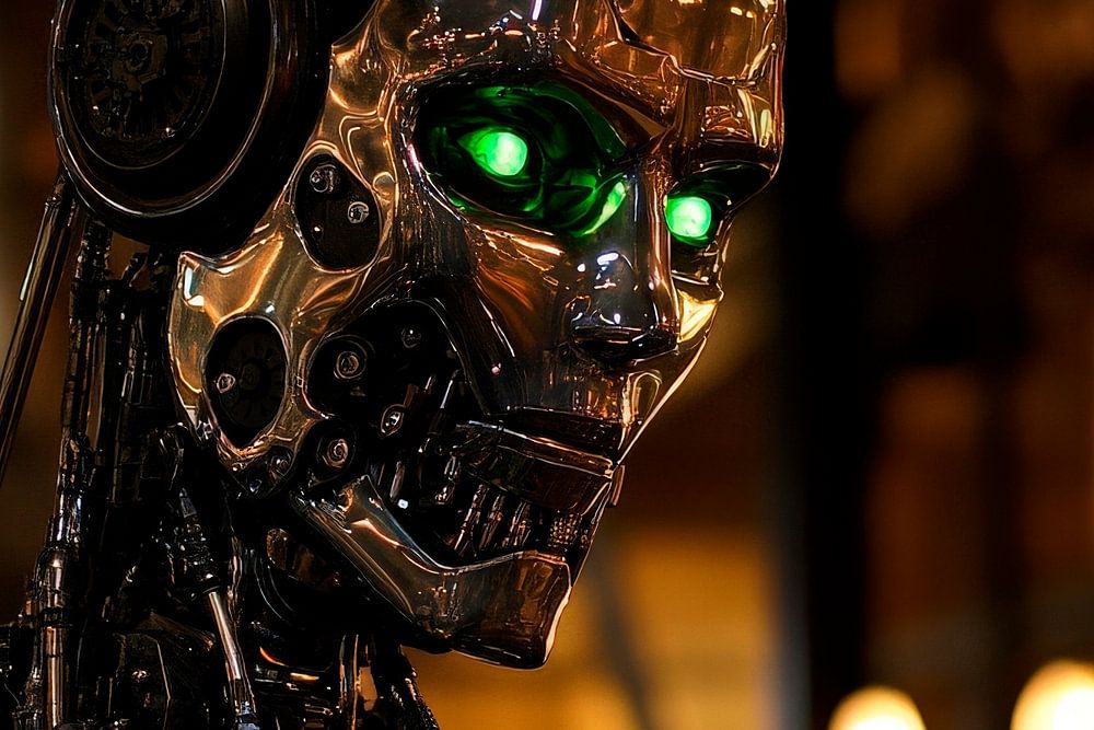 Mit seinen glänzenden Metalloberflächen und leuchtend grünen Augen strahlt dieser futuristische Roboter eine faszinierende Mischung aus Technologie und Mystik aus. Als echter Blickfang verleiht er jedem Wohnzimmer eine kreative Note und regt zu anregenden Gesprächen über die Zukunft der künstlichen Intelligenz an.