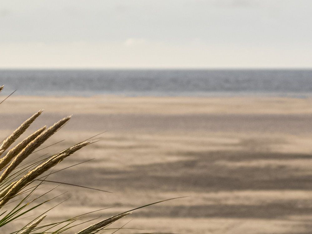 Ein minimalistischer Nordseestrand in der Nähe des Leuchtturms von Texel am frühen Abend.
